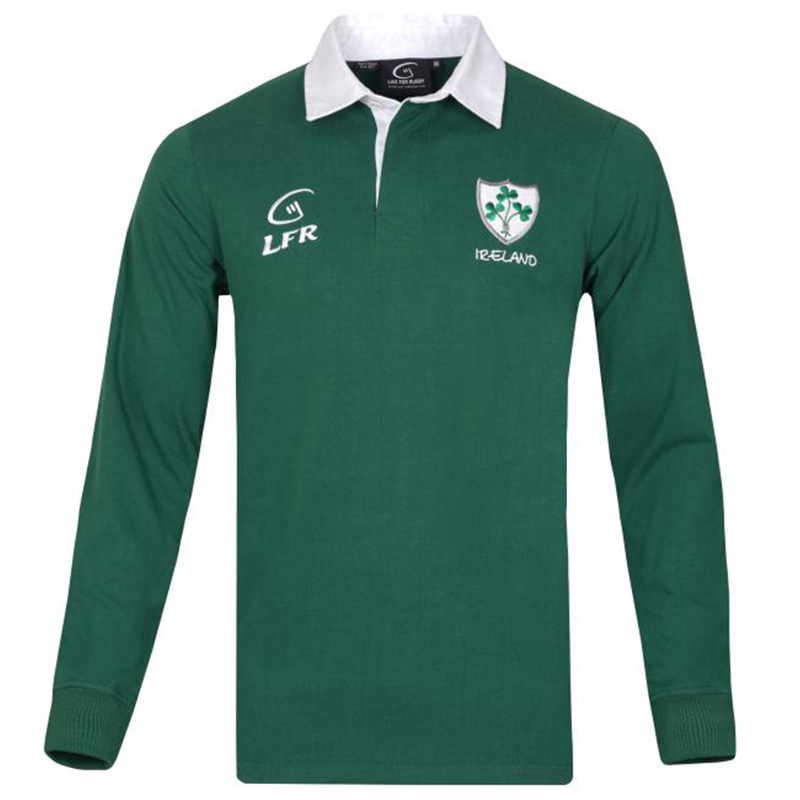 Show off your Irish pride with our Ireland Rugby Shirt with Shamrock Embroidery, a perfect blend of sporty style and cultural significance. The detailed embroidery adds a unique touch, with a Shamrock crest on the left chest, the 'Live for Rugby' logo on the right chest and upper back, and 'Ireland' embroidered under the back of the collar for added flair.