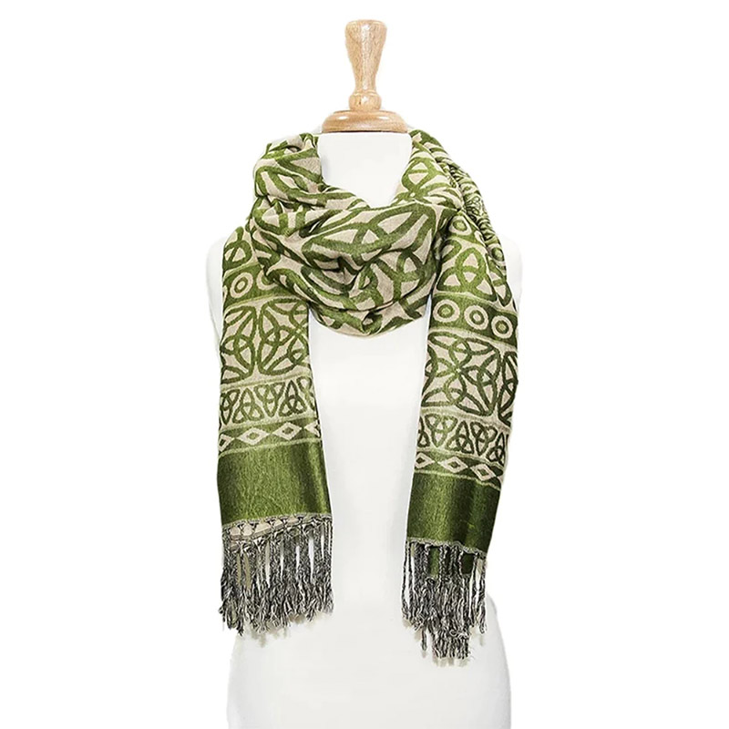 The three looped knots symbolize the Holy Trinity in Irish culture. This lovely Irish scarf makes the perfect present for yourself or the special lady in your life, as it greatly combines cultural authenticity and elegance!