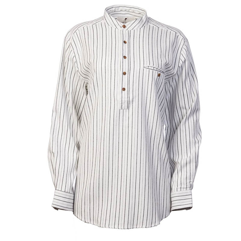 Ever wanted a shirt that brings together modern flair and the timeless charm of Irish fashion? Our Ladies Flannel Grandfather Style Shirt in Stripes might just be your new wardrobe favorite! Inspired by the traditional Irish grandfather-style shirt, it features a comfortable mandarin collar and a relaxed fit that feels like a gentle hug every time you slip it on. The buttoned neck opening adds a subtle, modern twist to its classic vintage vibe, and the neat front jetted pocket is perfect for stashing small essentials. Its striped pattern introduces a playful, fresh look that pairs effortlessly with some classic jeans, skirts, or even leggings.