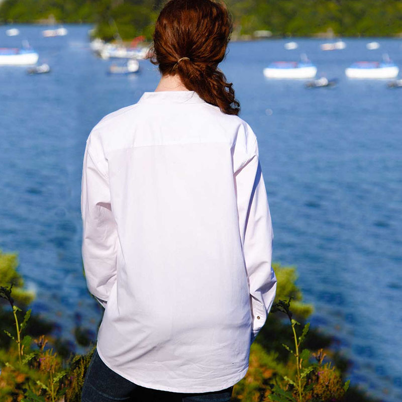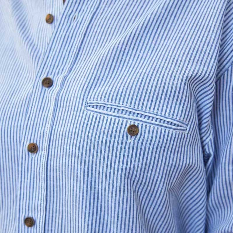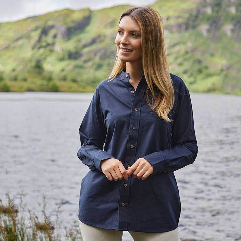 Celebrate Irish heritage with our Ladies Grandfather Style Shirt in Linen. It’sinspired by the traditional grandad shirt worn by farmers and tradesmen throughout Ireland's for centuries. Originating in rural Ireland, this iconic shirt became a wardrobe essential for its practical design and comfortable fit, embodying a blend of functionality and understated elegance.