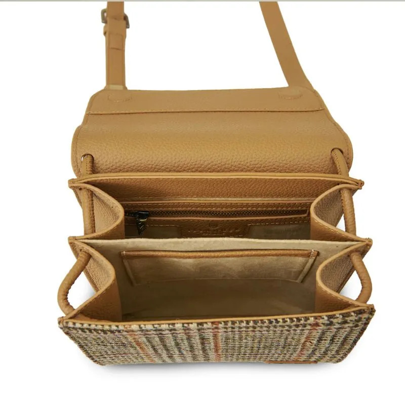Vintage-style Scottish bag crafted of genuine leather & Harris Tweed
