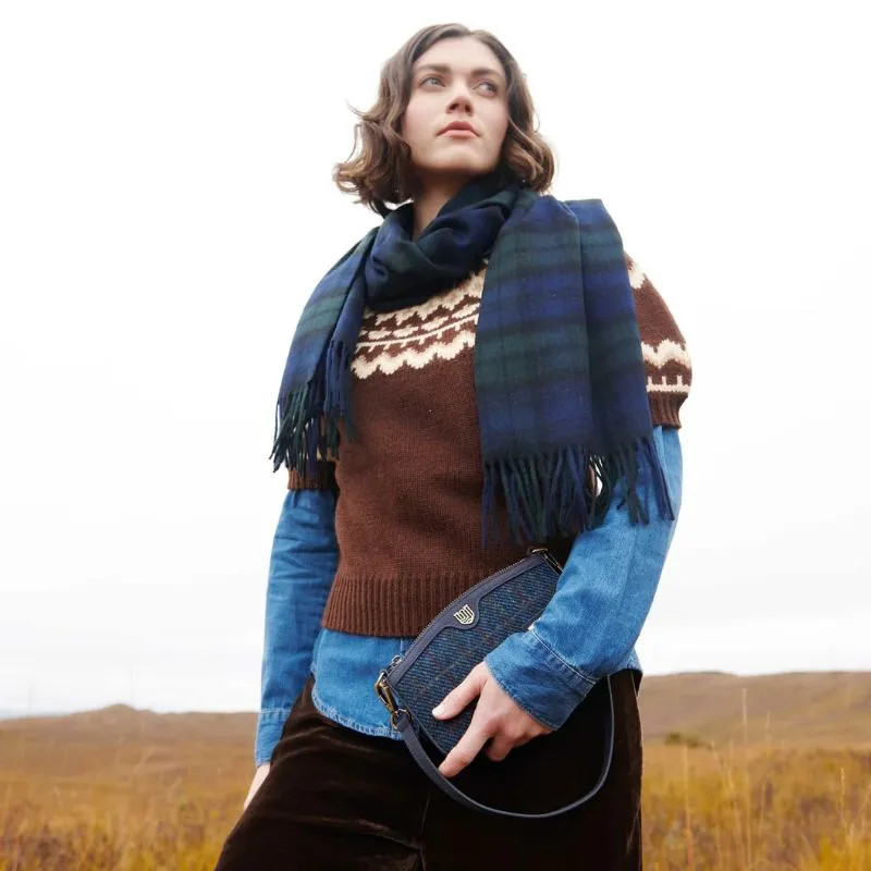 Our Ladies Harris Tweed & Leather Shoulder Bag is a small purse that feels both practical and special. It’s made from genuine leather with panels of authentic Harris Tweed, handwoven in the Outer Hebrides. The mix of smooth leather and textured tweed gives it personality. It’s the kind of bag that feels solid in your hand and looks just as good on a busy day as it does at night. And for a Scottish themed outfit you can pair it with our Ladies Harris Tweed Mini Wallet with Tartan Design.