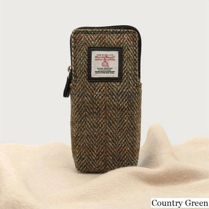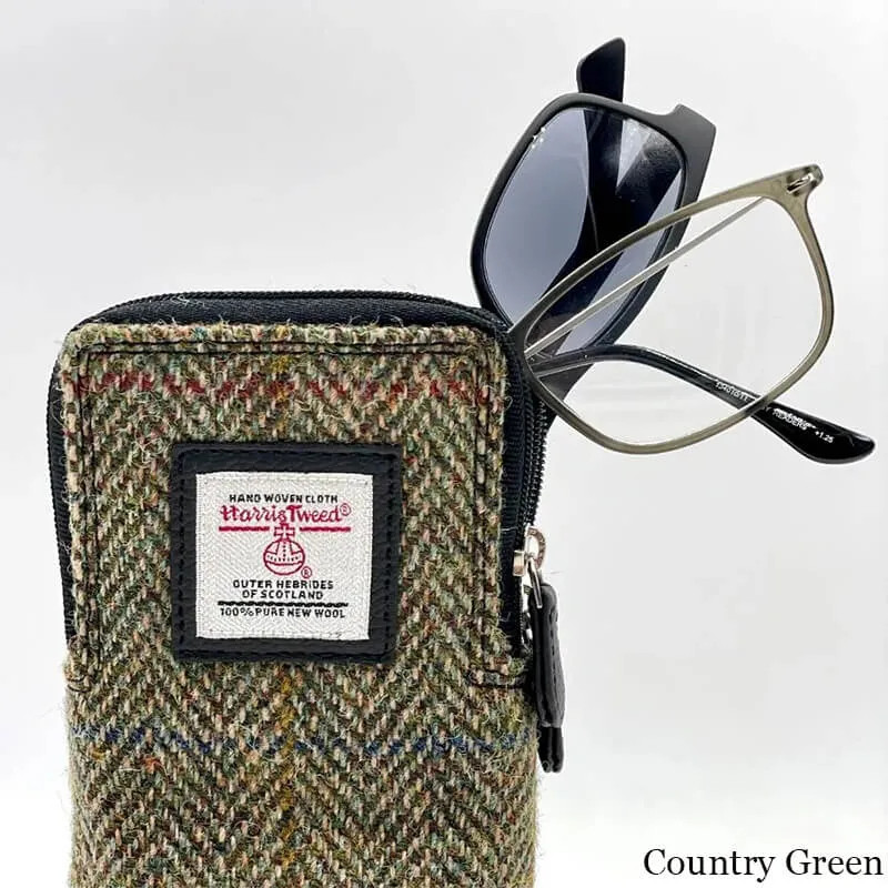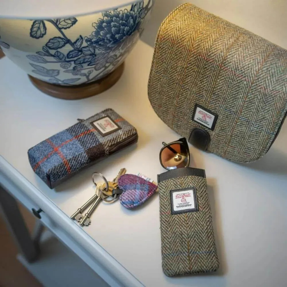 Our Harris Tweed & Vegan Leather Glasses Case is one of those pieces that feels different the moment you pick it up. The Harris Tweed used here is handwoven in small crofts across the Outer Hebrides, where weaving isn’t just a trade, it’s part of everyday life. There’s a certain honesty to a material made this way. You can see the slight variations in the weave, the depth in the colour, and the texture that only comes from traditional methods done properly and without rushing.