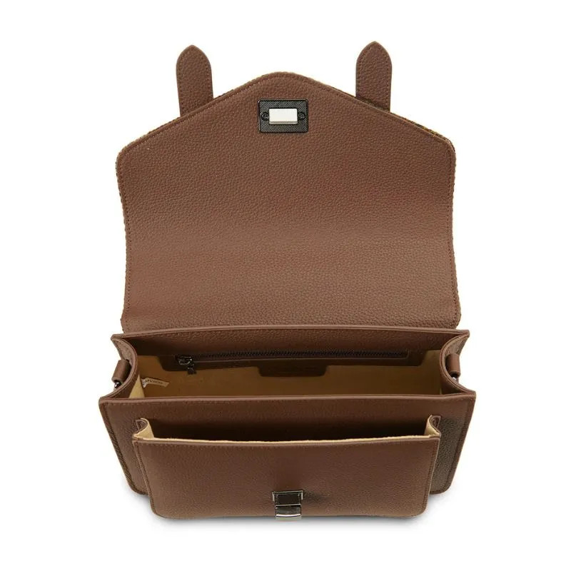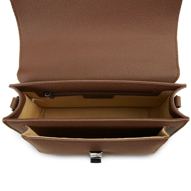 The bag is structured with 2 main compartments closed through a reliable metal twist clasp. The inside also provides a smaller zipper pocket. Flip it over, and you’ll get another one on the back, thoughtfully designed for keys, cards, and other essentials you might need at hand.