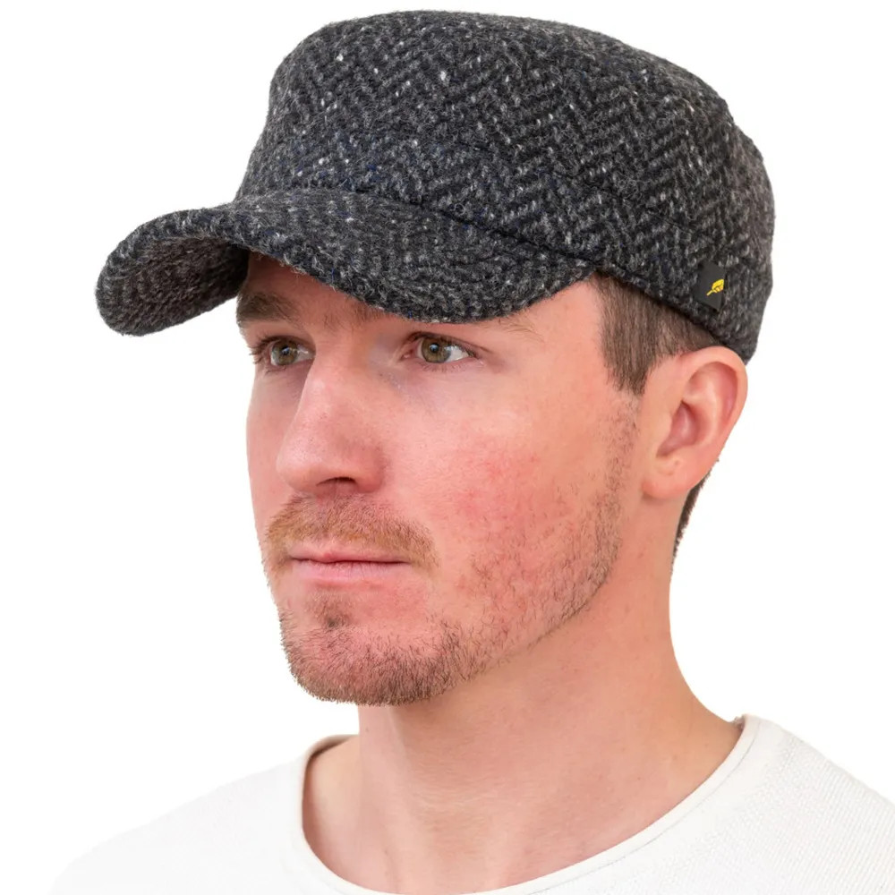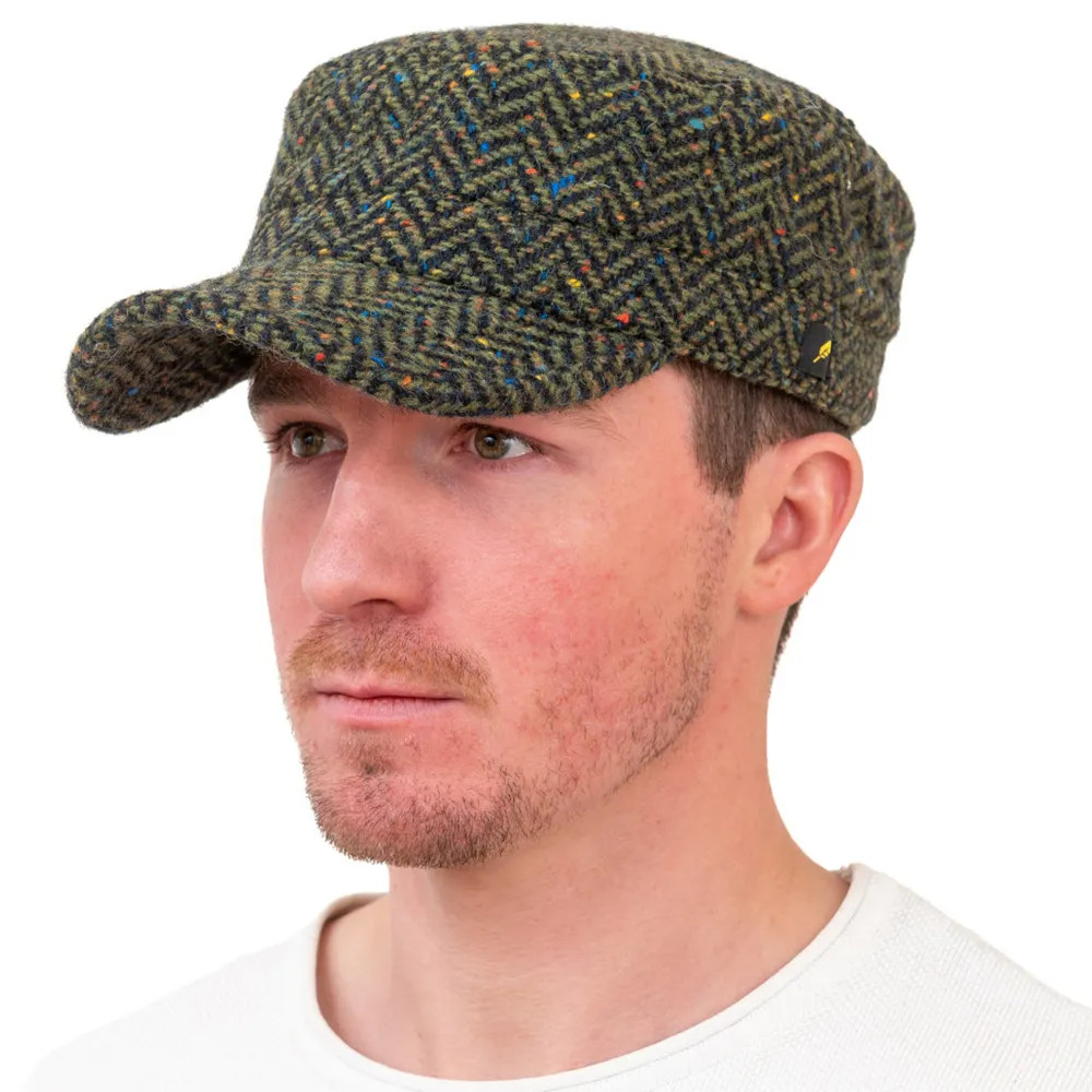 This cap features traditional Irish patterns, including herringbone and speckled tweed, adding a touch of timeless style.