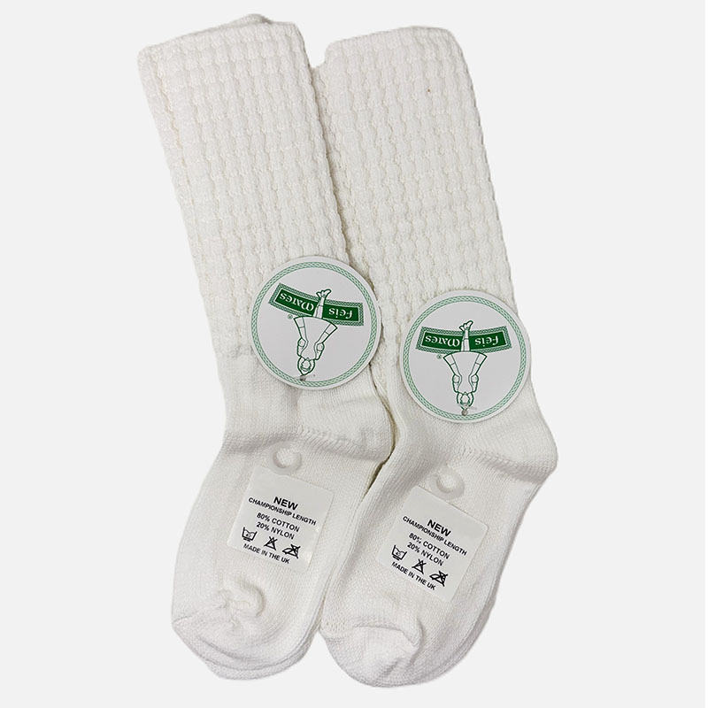 Feis Mates Small socks fit my child's jig shoes (11-1.5) perfectly. Comfortable and good quality.