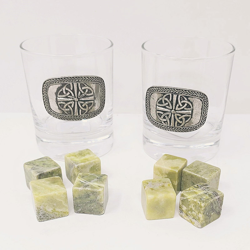 Our Authentic Irish Whiskey Glass Gift Set- Trinity Knots makes a unique addition to your bar and a thoughtful gift for a dear man in your life! The set comprises 2 matching whiskey glasses and 8 marble cooling stones (4 for each glass), ideal for a relaxing evening with your partner or with friends. Want to complete your collection with even more Irish-inspired barware? Check out our exclusive Irish Glasswear category.