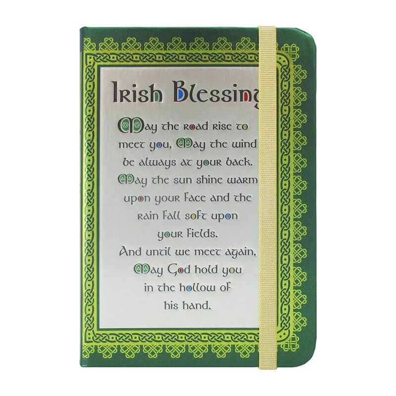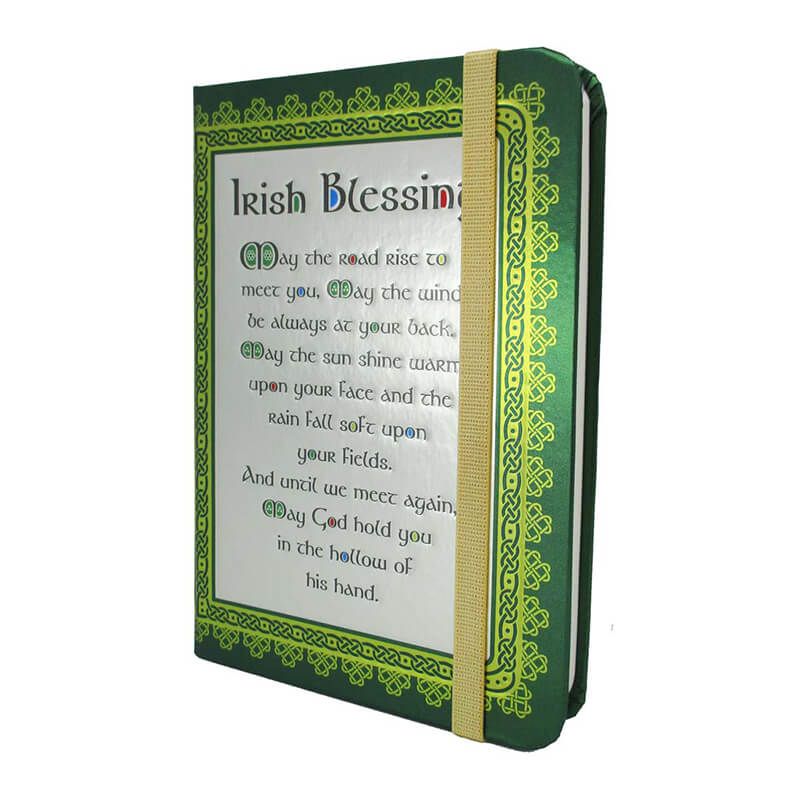 Infuse your writing experience with Irish charm with our Irish Shamrock Blessing Notebook. This journal features a sturdy cardboard cover and an elastic closure that is sure to keep the pages together. The design incorporates a well-known Irish blessing inscribed in an ancient Celtic font style surrounded by an embossed border of golden little shamrocks.The traditional Irish blessing "May the road rise to meet you" wishes for protection, success, harmony, and well-being, making the notebook a functional and significant piece of stationery. The notebook has 88 lined ivory pages that are sure to elevate your writing and make it feel luxurious. Measuring 5.59” in length and 3.85” in width, our Irish journal perfectly fits in your bags if you wish to write down the lovely moments from each day or adventure. This notebook would make the perfect gift for anyone who appreciates Irish culture and is passionate about writing.
