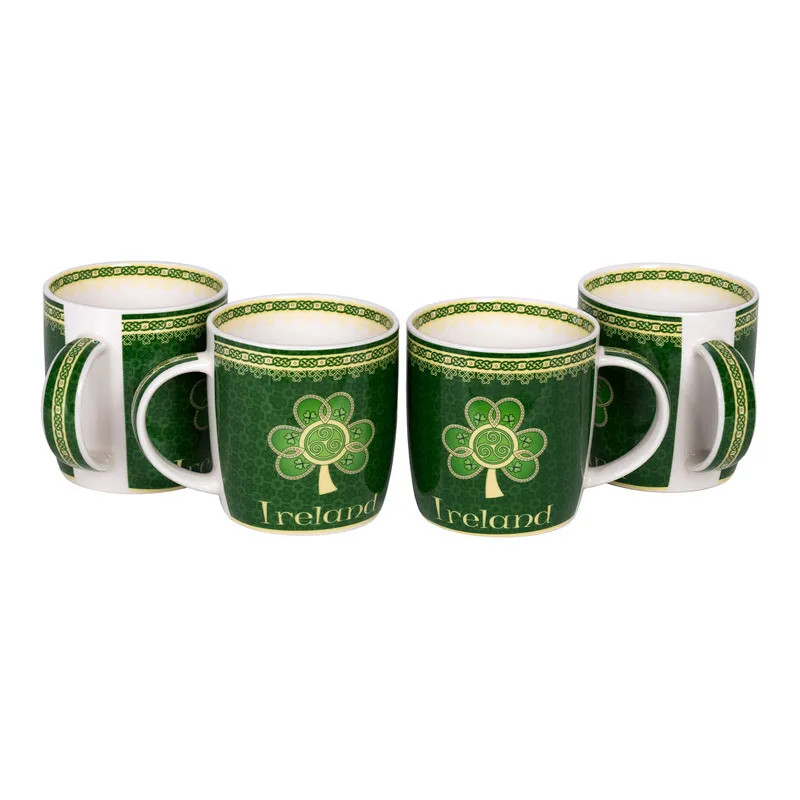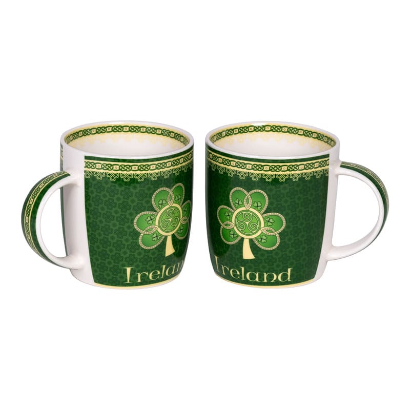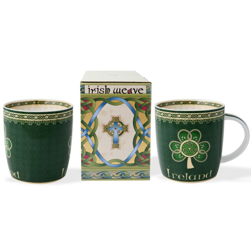 A piece that combines function with design, our Ireland Mug with Shamrock is the perfect gift from Ireland! Made in Ireland, by Royal Tara, a leading manufacturer that is specialized in contemporary designs, inspired from tradition and useful gifts. The mug is 100% premium bone china, being very durable and resistant to breakage and temperature fluctuations. Due to bone china’s thermic properties, the mug will keep your beverage hot for longer. It is also very easy to take care of, being machine washable. Mug holds a liquid capacity of 370 ml or 12.5 fluid ounces. The design is authentic Irish, combining statement colors such as gold and green, with a delicate shamrock as its centerpiece. The shamrock has deep roots into Irish culture, as a symbol of luck used by Saint Patrick himself to explain the Holy Trinity to the Celtic pagans. The three leaves symbolize the Father, the Son and Holy Spirit. Complementary details, such as the tiny Celtic knots, representing the Holy Trinity, enrich the overall design. Our mug is an exquisite piece that encapsulates Irish culture in an authentic manner. Get this as an addition to your tea set and enjoy a moment of relaxation while also cherishing your roots or make a thoughtful gift to a dear one!