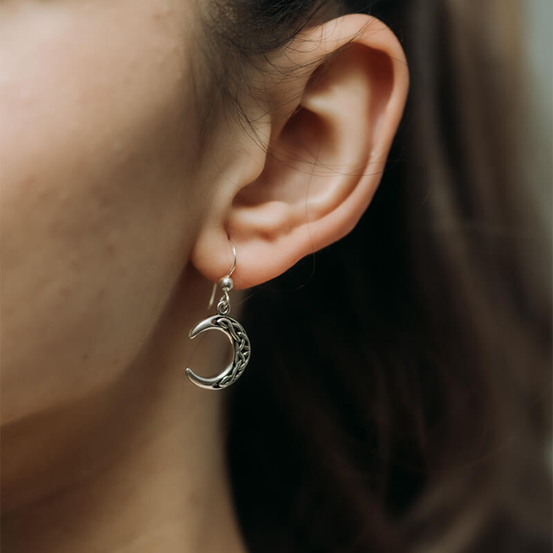 If you are looking to add Irish elegance to your looks or searching for a gift for a loved one, our silver dangle earrings are the ideal choice. They are made from sterling silver, a durable, shiny, and highly resistant material ensuring to last for many years to come. The earrings are meticulously crafted in the shape of a crescent moon and the intricate filigree of Trinity knots represents the Holy Trinity in Irish Christianity, a beautiful expression of love. The dangle earrings measure 0.55 inches in width and 0.63 in height and you can easily style them with any outfit for extra glimmer. These accessories will elevate your jewelry collection and will make an exquisite Irish gift for any occasion.