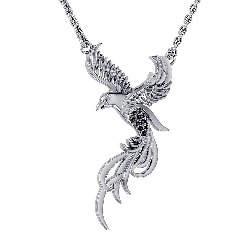 What makes this pendant special is its meaningful symbolism. The Phoenix represents endurance and immortality as it rises from the ashes and is reborn through fire. The pendant serves as a reminder to thrive even when times are difficult. The pendant measures approximately 1.20 inches in width and 2.16 inches in height and comes with an 18-inch sterling silver chain.